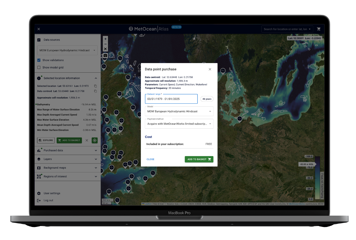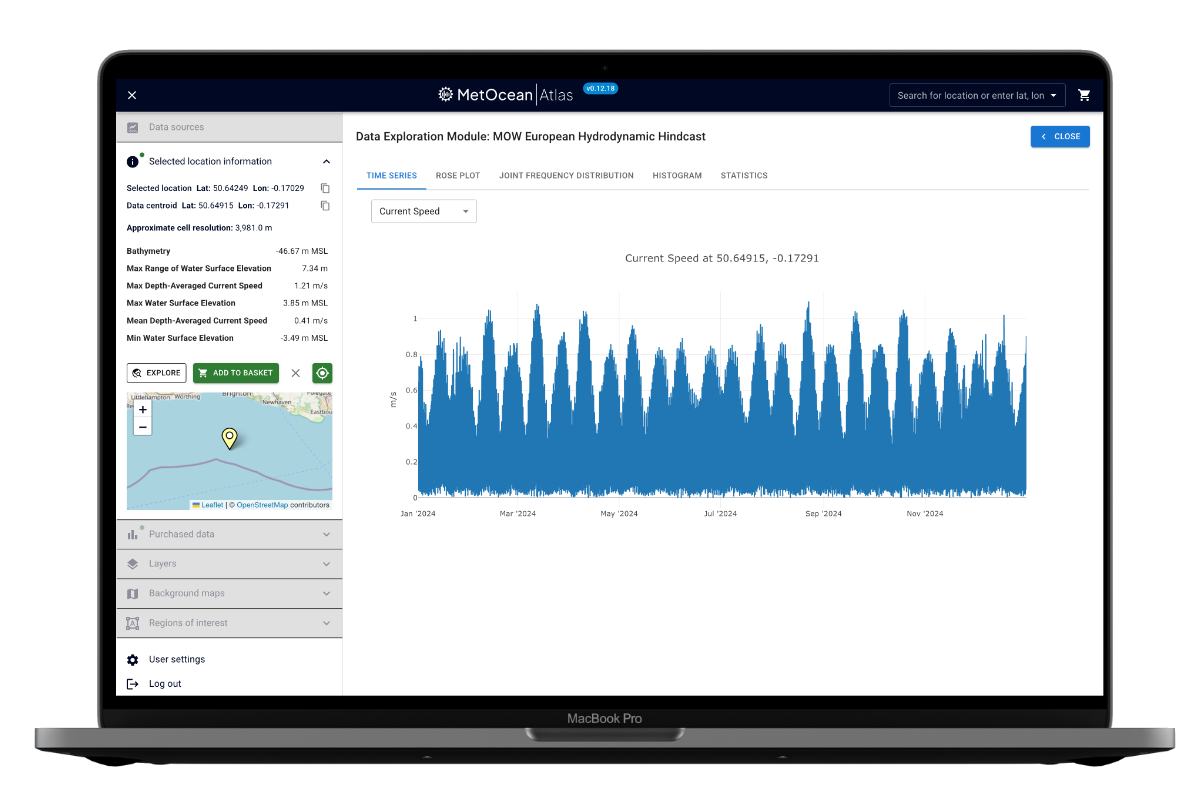 MetOceanAtlas offers a fresh, intuitive interface with powerful tools to search, visualise, and download datasets spanning waves, currents, wind, tides, and other critical marine parameters. Whether you’re working in offshore energy, coastal engineering, shipping, or scientific research, MetOceanAtlas provides the flexibility and depth you need to make informed decisions quickly and confidently.